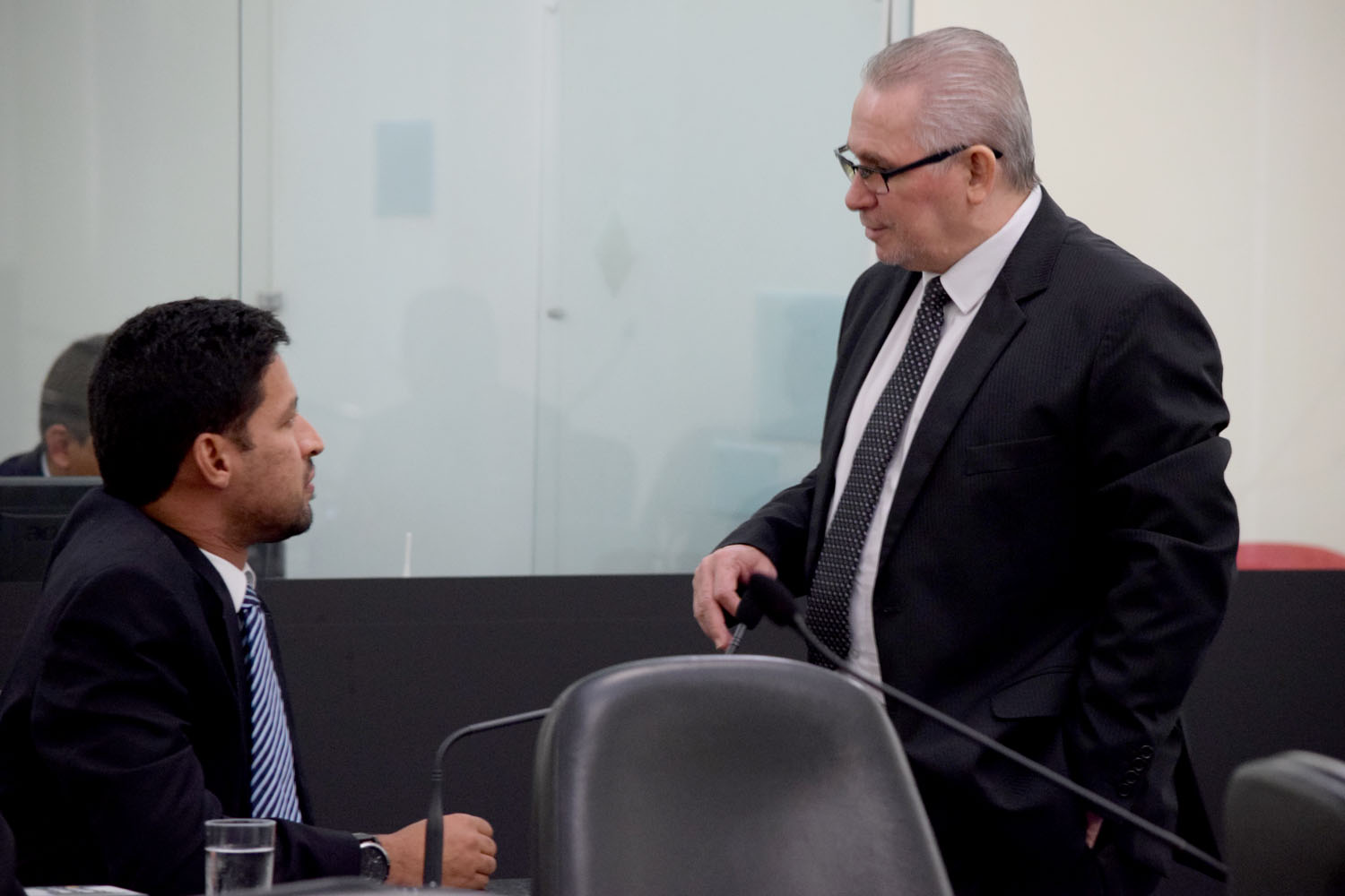 Deputados Rodrigo Cunha e Pastor João Luiz conversam durante a sessão.JPG