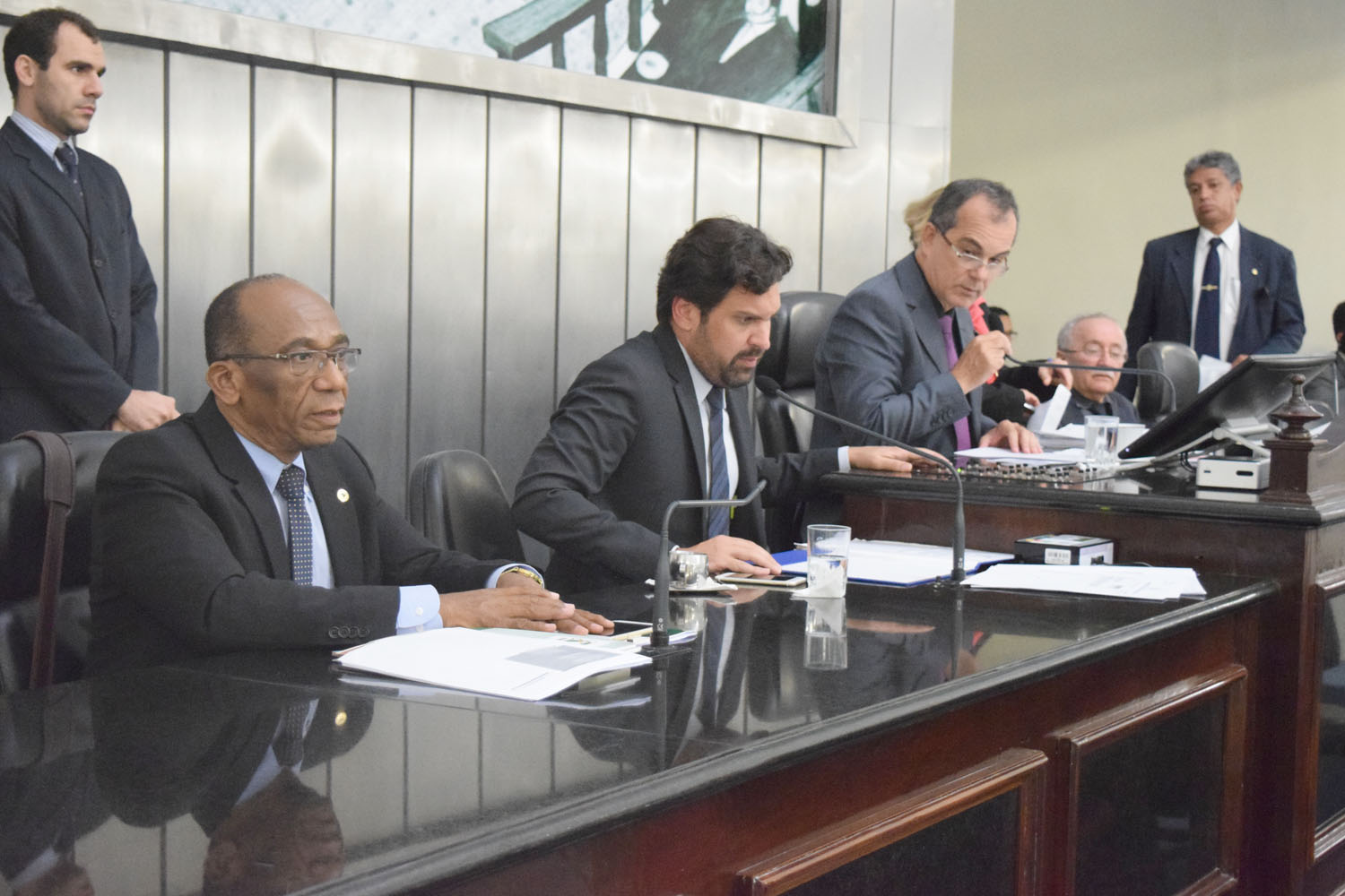 Mesa Diretora contou com a presença dos deputados convidados Antônio dos Santos e Luciano Bispo .JPG