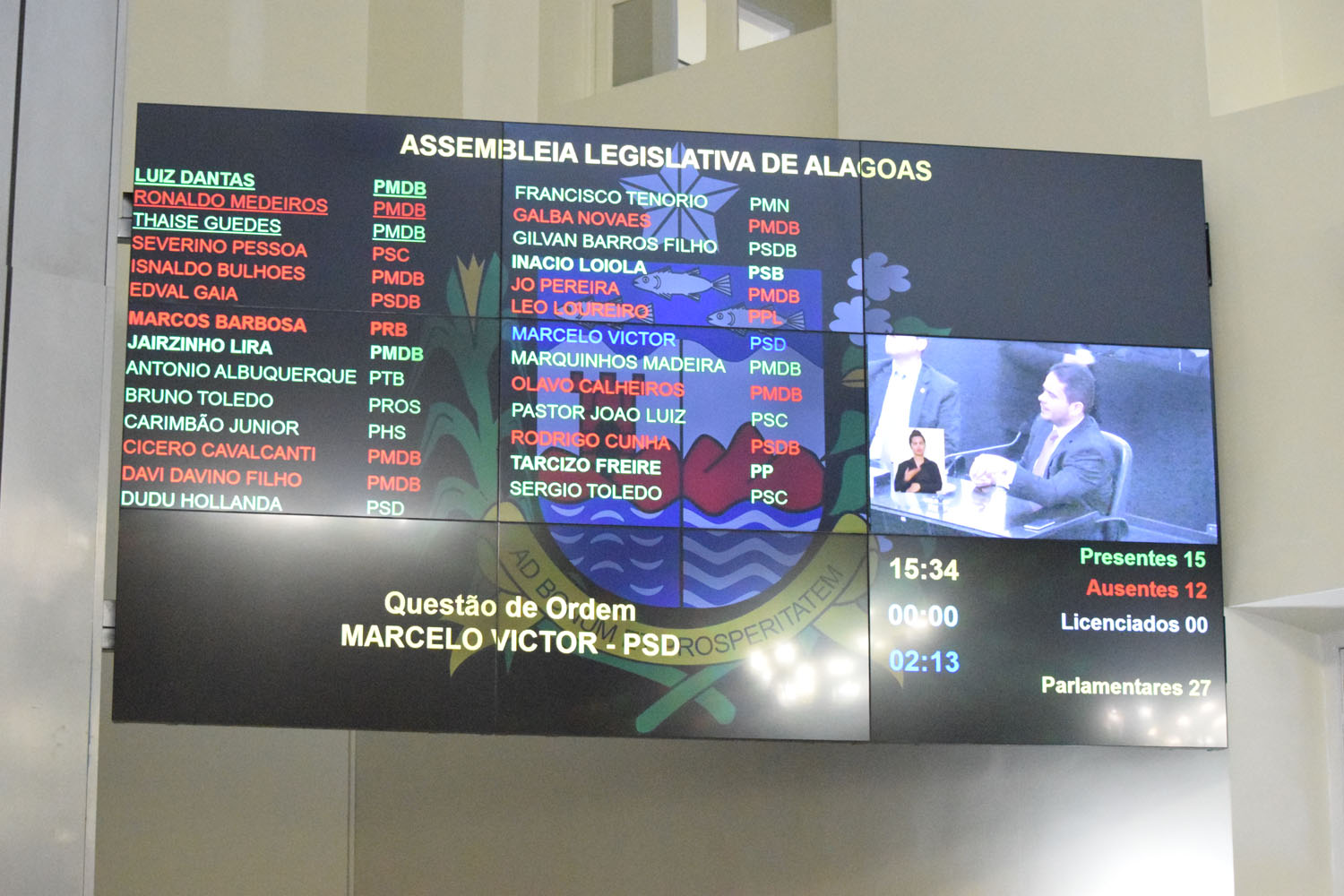 Painel eletrônico contabiliza 15 deputados presentes.JPG