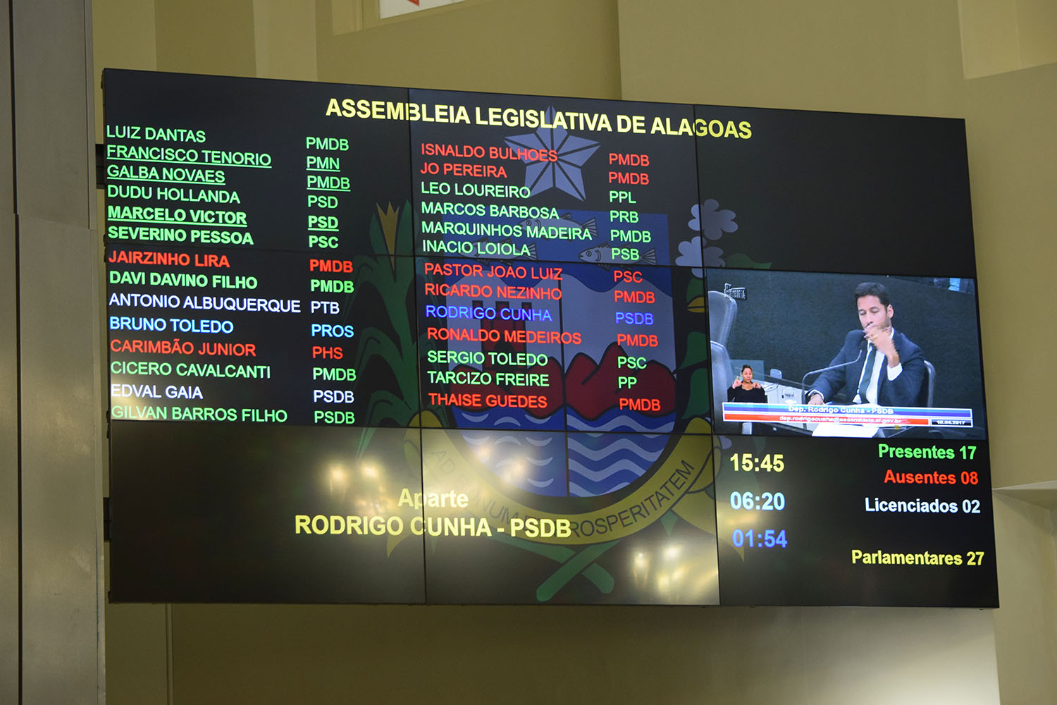 Telão contabiliza presença de 17 parlamentares.JPG